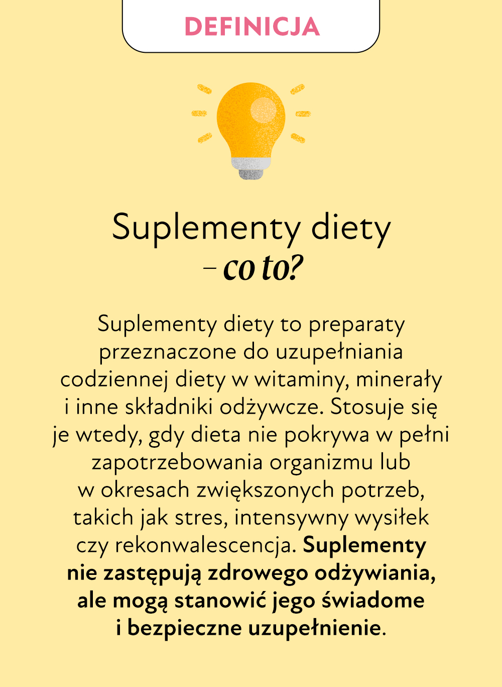 Suplementy uzupełniają dietę, nie niedobory w organizmie. Powinny dostarczać składników, których nie jesteś w stanie przyjąć wraz z codziennym menu.