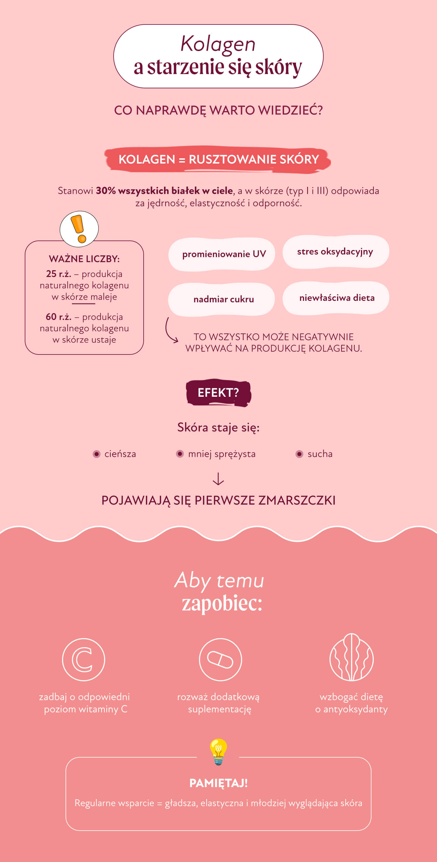 Krem może nie przynosić trwałego efektu, gdy bariera hydrolipidowa skóry jest osłabiona. W takiej sytuacji dochodzi do zwiększonej przeznaskórkowej utraty wody (TEWL), przez co skóra szybko traci wilgoć. Objawia się to uczuciem ściągnięcia mimo regularnego stosowania kosmetyków. Bez odpowiedniego nawodnienia organizmu, zdrowych tłuszczów i wsparcia bariery ochronnej, nawet najlepszy preparat do pielęgnacji skóry naturalnej działa jedynie chwilowo.