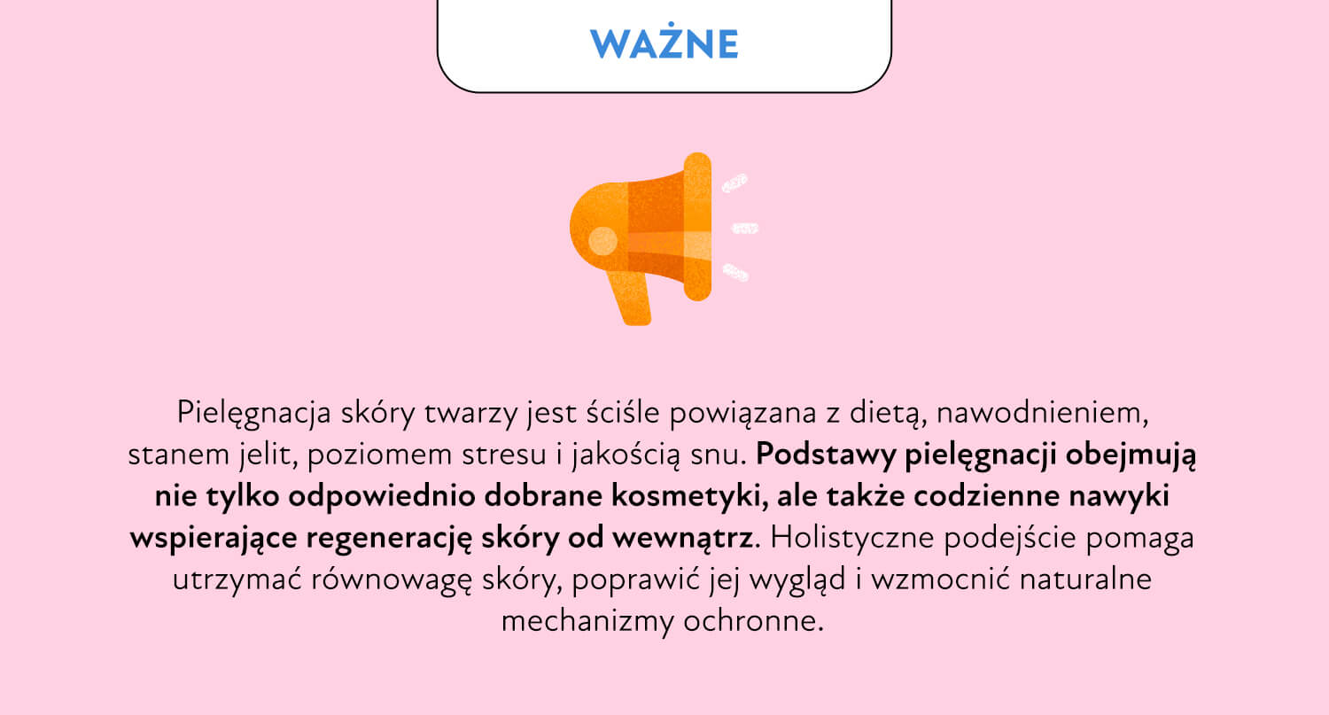 Skuteczna pielęgnacja skóry zaczyna się od nawodnienia i diety. Regularne picie wody małymi łykami oraz dostarczanie elektrolitów pomaga skórze zatrzymać wilgoć. W codziennym jadłospisie powinny znaleźć się warzywa i owoce bogate w antyoksydanty, odpowiednia ilość błonnika wspierającego jelita oraz produkty fermentowane. Takie wsparcie od środka poprawia regenerację skóry i wzmacnia efekty pielęgnacji skóry twarzy.