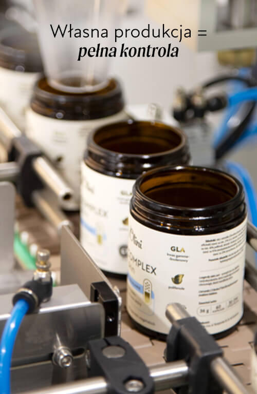 A po trzecie mamy zasadę: „zero magazynowania na zapas". Olej jest tłoczony pod konkretne zamówienie, a nie na zapas. Do klientów trafia zwykle w ciągu 3–5 dni od tłoczenia. To samo dotyczy oleju używanego w DUO COMPLEX Skin – jest tłoczony specjalnie pod produkcję kapsułek, a nie pobierany z magazynu.