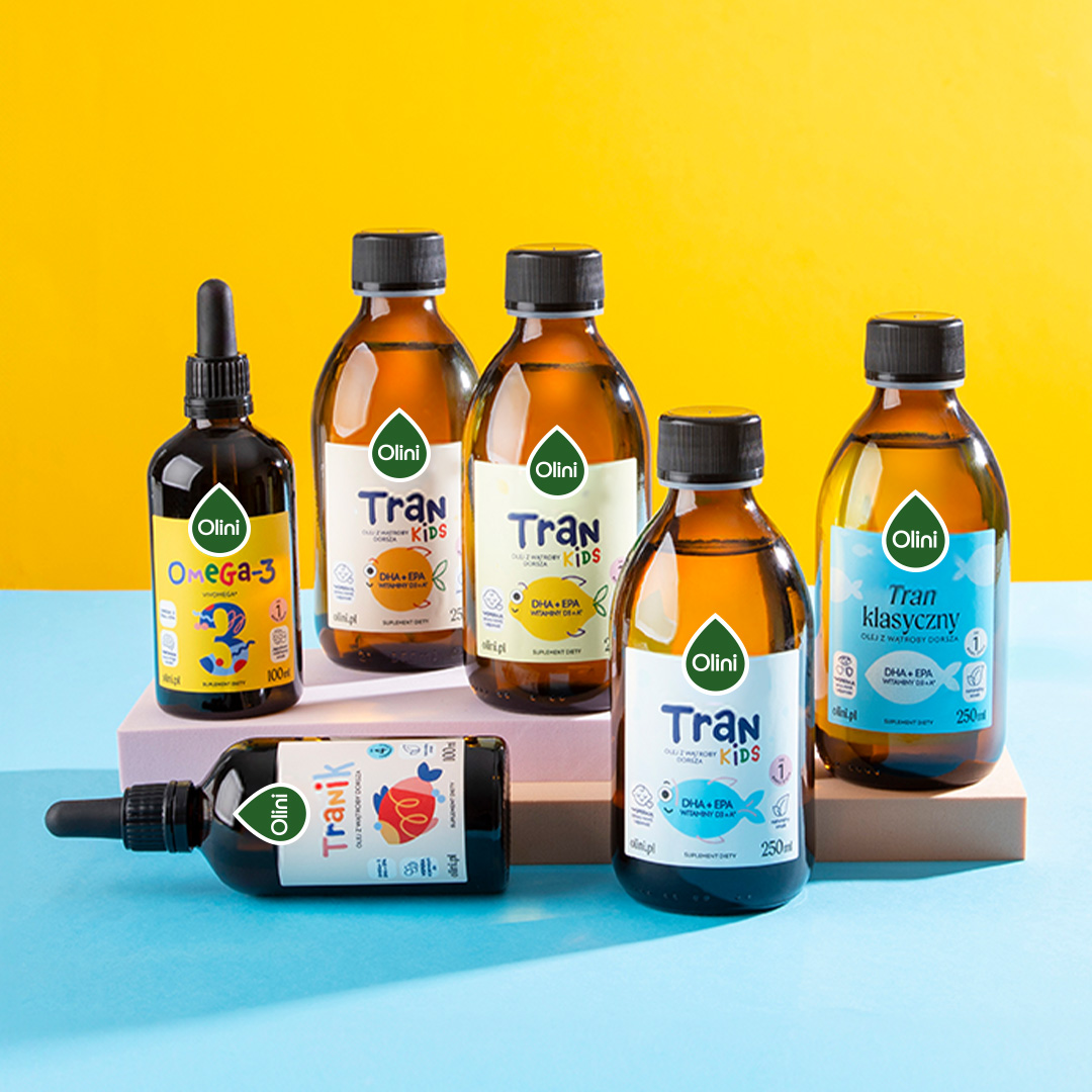 Tran dla dzieci Olini ma w składzie witaminy D3 i A w dużych ilościach. Według badań, wpływają one na pracę układu odpornościowego.